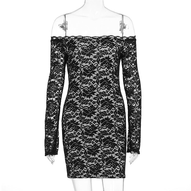 Retro pure desire sexy slim fit off shoulder flared sleeve hip hugging short skirt